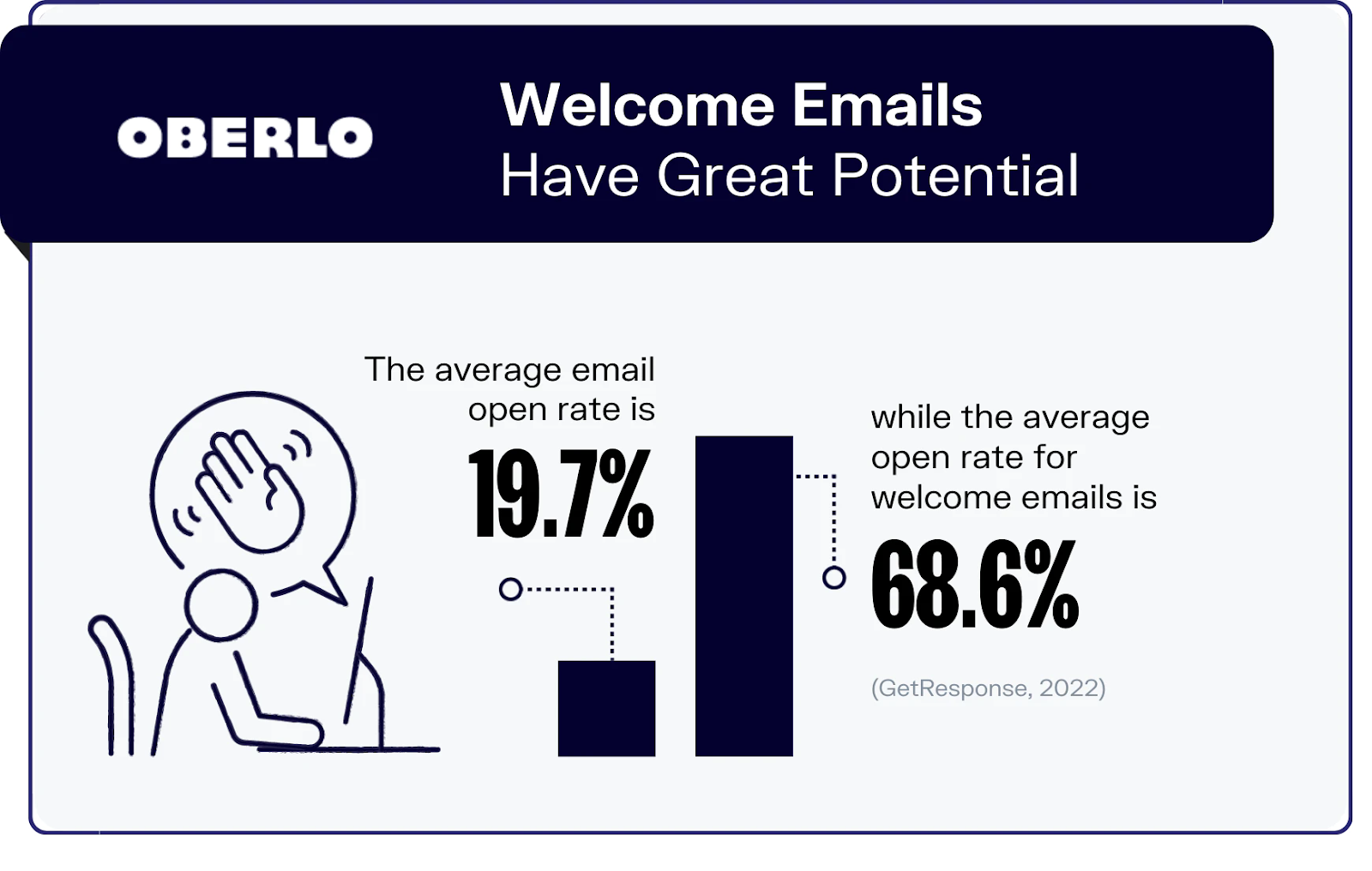 - Welcome emails are highly effective for nurturing leads since they have a higher open rate. The average open rate for welcome emails is 68.6%. (Oberlo)