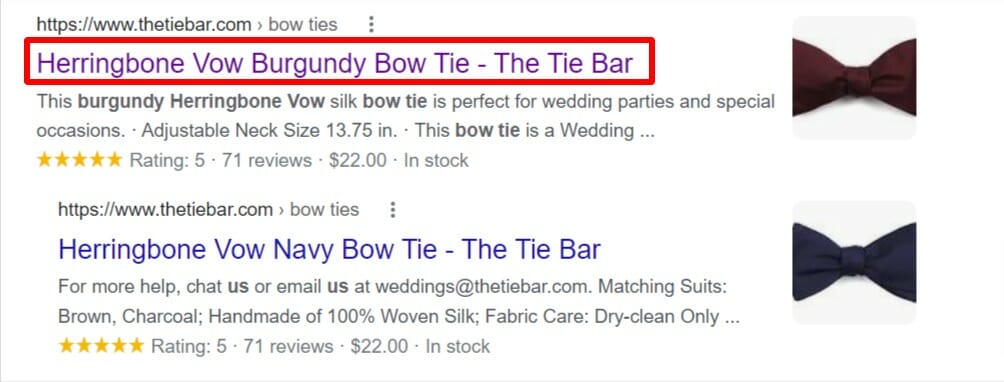 As we discussed earlier, CTR is a ranking factor. Just showing up in search results won’t do you any good if searchers aren’t clicking on your product listing. So the more you can make your search result stand out, the better your CTR and product page SEO.