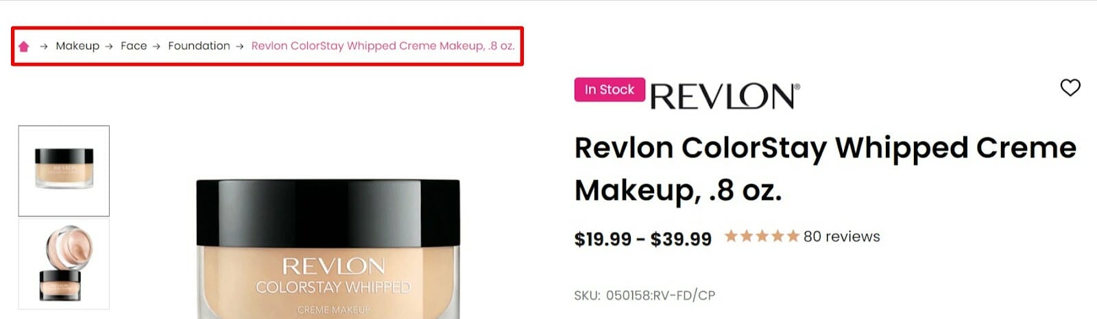 Breadcrumbs connect your product page with other pages in a meaningful way. Plus, the internal links help further your SEO efforts.
