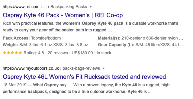 We bet you said the second one. Showing additional data such as customer reviews in search engine result pages can help draw more attention and get more clicks.