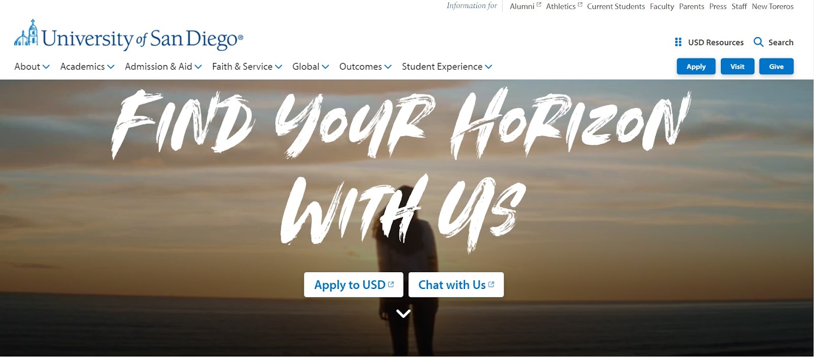 For example, the University of San Diego website features a reel of different student life images, as well as scenic views of the beach:
